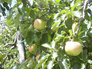 お土産用にもぎ採られたりんごちゃん達。 真っ赤になって美味しそうでしょ? 木の枝まで取れてしまいました(^^;