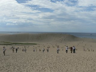 砂丘に面する土産物通りです。 この日は連休の中日ということもあってか、 想像を絶する数の観光客が訪れていました。