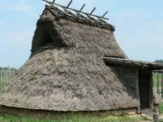 弥生村にあった弥生時代の一般的な住居です。 残念ながら復元した竪穴住居だそうです。 復元時期は明記されていませんでした。