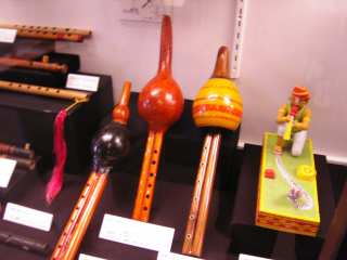 博物館は6棟の建物からなっていて、民芸調の造りの館内には、日本の郷土玩具、駄菓子屋の玩具や近代玩具、海外140カ国の玩具や人形など、総数8万点を超える資料が展示されているそうです。日本玩具博物館は個人経営で今年の11月10日に開館30周年を迎えたそう。 天井に大凧(山口県見島の「鬼ようず」)が展示してある1号館では季節の企画展&世界の笛を展示されていました。 土、竹、葦、木、骨など、さまざまな素材で作られた世界45カ国の350点の笛を展示。もちろん日本を代表する笛も展示されていました。 |